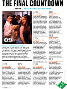 In which I make comedic observations about alcohol abuse. FHM, July 2013